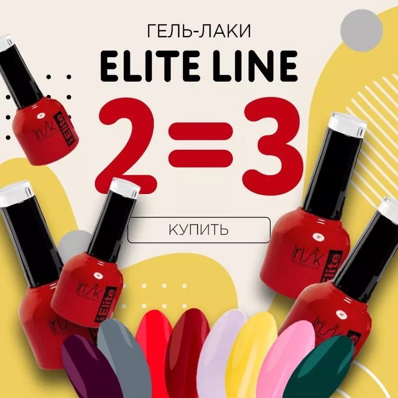 Дарим третий гель-лак Elite Line при покупке двух! На товары по акции не распространяются промокоды и данная скидка не суммируется с другими скидками. Количество товаров ограничено!